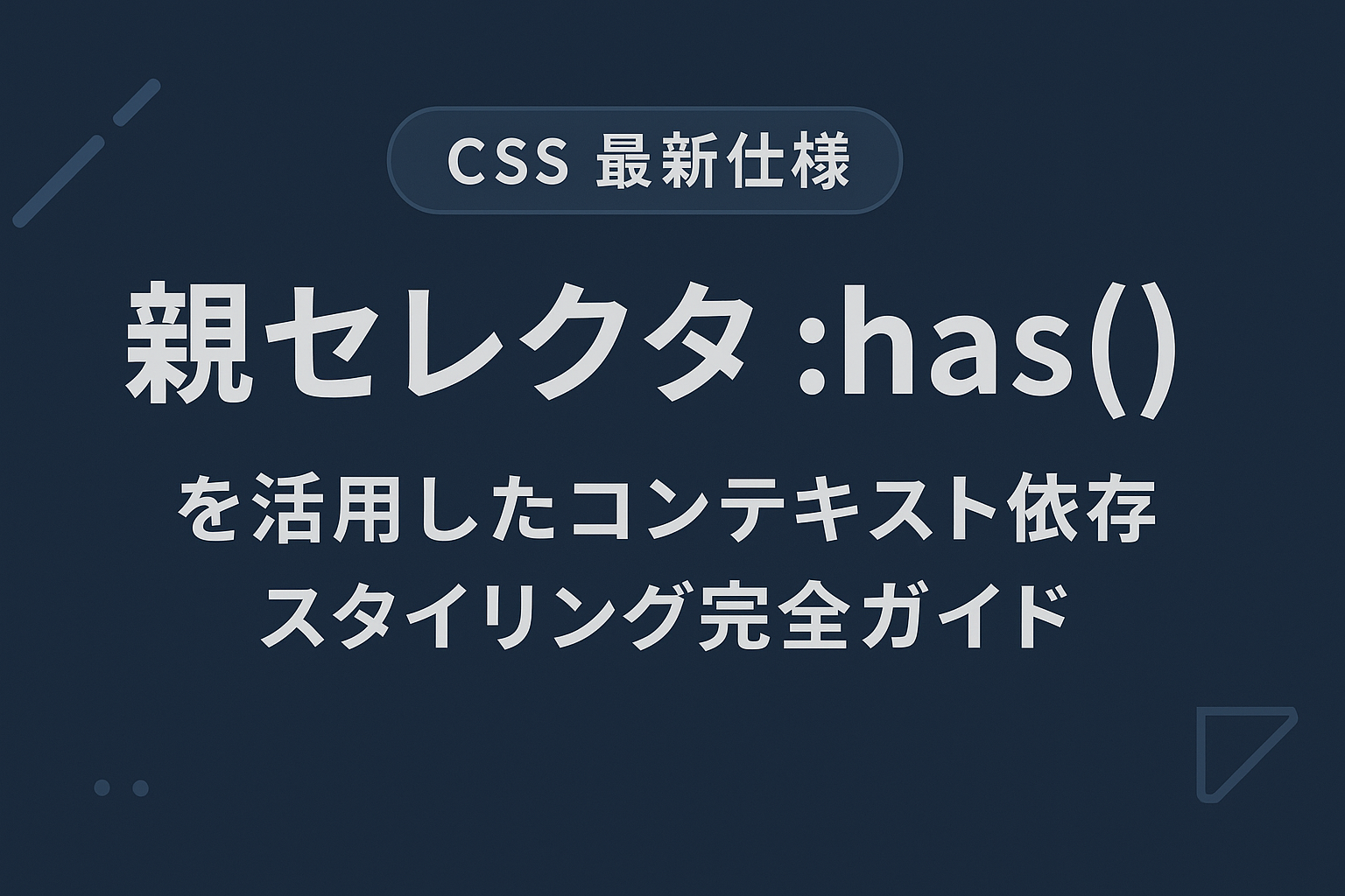 【CSSの新機能 :has() とは|親要素を直接スタイルできるセレクタ】 CSS Selectors Level 4で定義された :has() 擬似クラスは、「子要素や兄弟要素の状態によって親要素へスタイルを適用できる」革新的な機能です。これによりJavaScript不要で、よりメンテ...